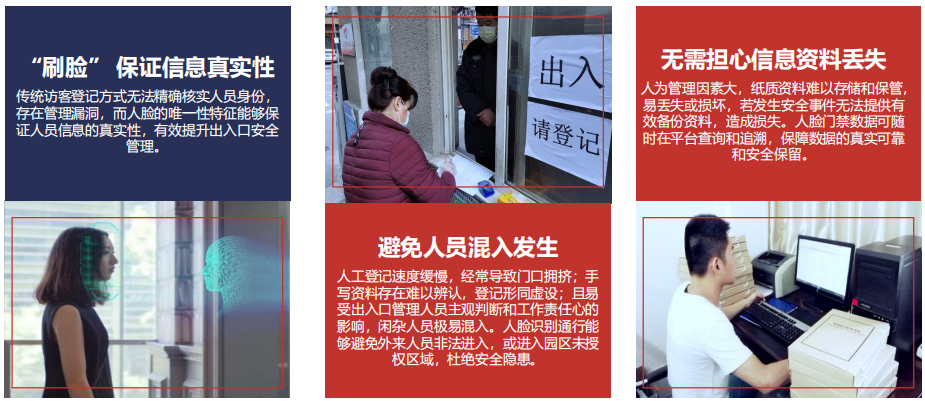 采用人臉識別門禁系統,可以有效提升園區管理模式,將園區的安保工作監管提高到一個新高度;統籌設備、人員、事件等管理,解決人工管理效率低、人力資源的投入高等問題。借助先進的人臉識別技術,真正將園區管理推向現代化、安全化、高效化、智